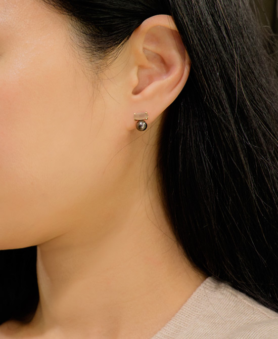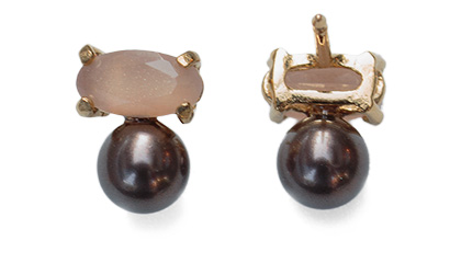 from Wouters & Hendrix featuring a butterfly fastening, a black crystal pearl and a moonstone stud.