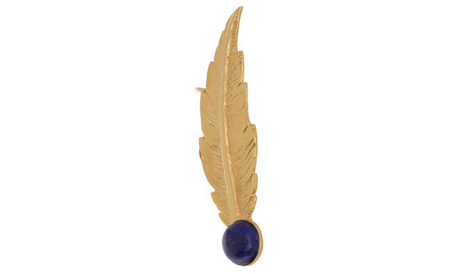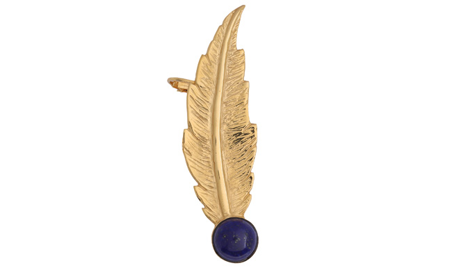Made in 22K yellow gold plated bronze with a beautiful round cabochon Lapis at the end.
