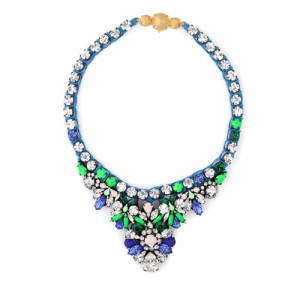 Crystal, pearl and enamelled stone embellished floral necklace from shourouk.