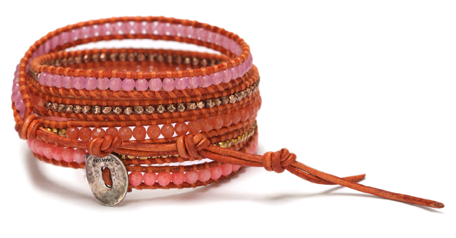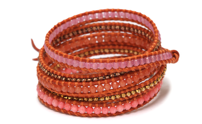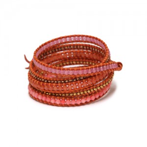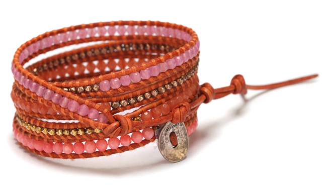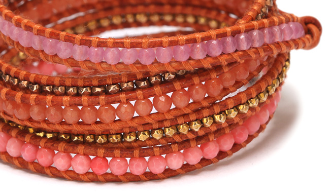 5 wrap bracelet with multi semi precious stones and sterling silver nugget