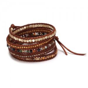 5 wrap bracelet with multi semi precious stones and sterling silver nugget